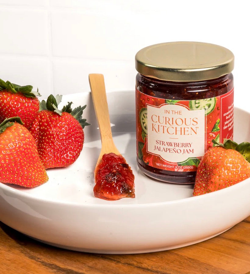 A little sweet, a little heat—and a whole lot of flavor. Our Strawberry Jalapeño Jam pairs summer’s juiciest strawberries with a gentle kick of jalapeño for a bold twist on a Southern favorite. Handcrafted in small batches from a family recipe, it’s the perfect blend of fruity brightness and peppery warmth.