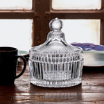 The charm of vintage design elements is brought to life in this elegant glass sugar dish, which features the beautifully embossed French word for sugar, "sucre," on its unique corrugated base. This striking piece seamlessly blends functionality with aesthetic appeal, making it a timeless addition to any kitchen or dining table. Vintage design elements are meticulously integrated into the piece, reflecting a bygone era of craftsmanship. The dish not only serves a practical purpose but also acts as a decorative accent, perfect for hosting afternoon tea or embellishing a casual breakfast nook. Aligned with both nostalgia and sophistication, this sugar dish beautifully represents the elegance of French artistry. Lead free soda lime glass. Dishwasher safe. Not recommended for microwave oven.