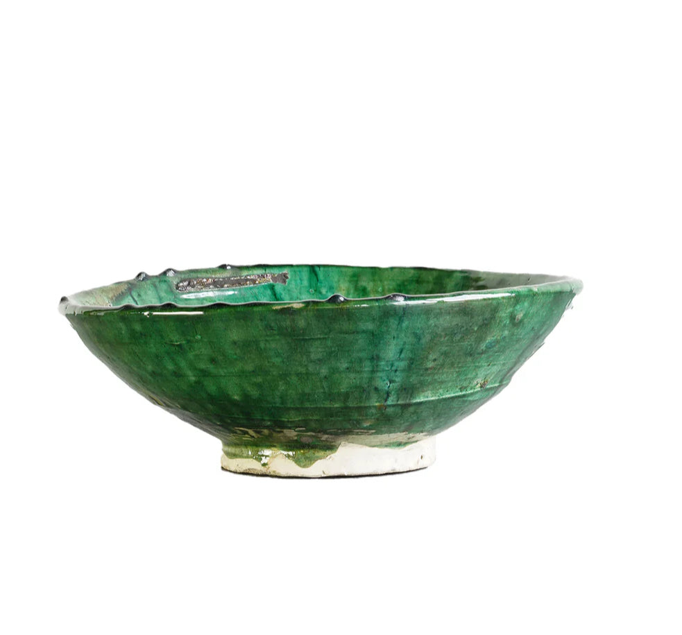 Use the Tamegroute Bowl Green as a wall or decorative accent. The lush, variegated green of the hand-shaped Tamegroute Bowl adds vibrance.
