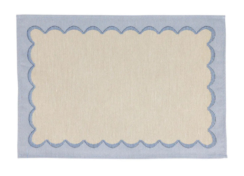 Create an inviting atmosphere with the Tavola Blue Scalloped Placemats, featuring jacquard stitching and a soothing color palette.
