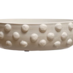 Add a touch of rustic charm to every space with this exquisite decorative terra-cotta bowl with raised dots that creates an intriguing texture, while the white color exudes elegance and simplicity. Effortlessly complements natural materials like wood and stone, as well as earthy color palettes. It can be used as a centerpiece, holding fruits, decorative balls, or dried flowers in the home or office space. This piece is made of 100% terra-cotta, a natural and durable material.