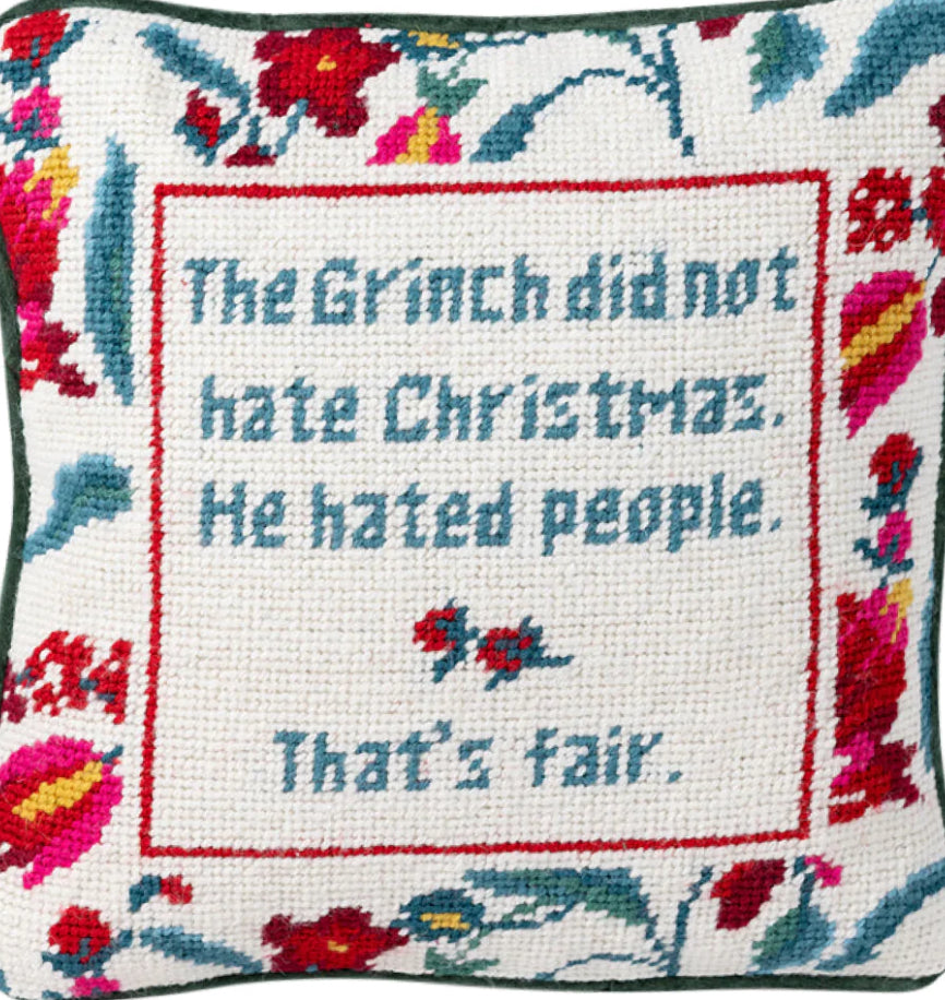 Make a statement with this charming-meets-chic needlepoint pillow. Hand embroidered in wool and backed in luxe green velvet, we've revived this Southern staple with sayings that are sure to get a smile.