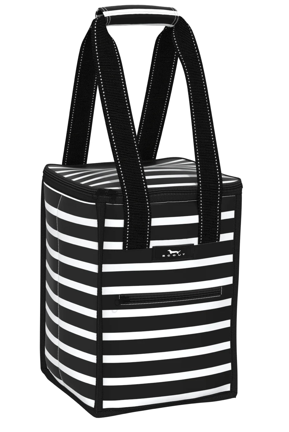 YOU HAD ME AT 5 BOTTLES OF WINE (UPRIGHT). The perfect size for small family outings, road trips, or a 12-hour shift, this tall, square cooler is a great shape for stacking containers. Stash napkins, utensils, or chocolate bars (no judgement!) in the outside pockets for quick access. Remember ice packs! Because it squishes flat in your suitcase, we love the Pleasure Chest for travel, and it makes a great leave-behind hostess gift.
