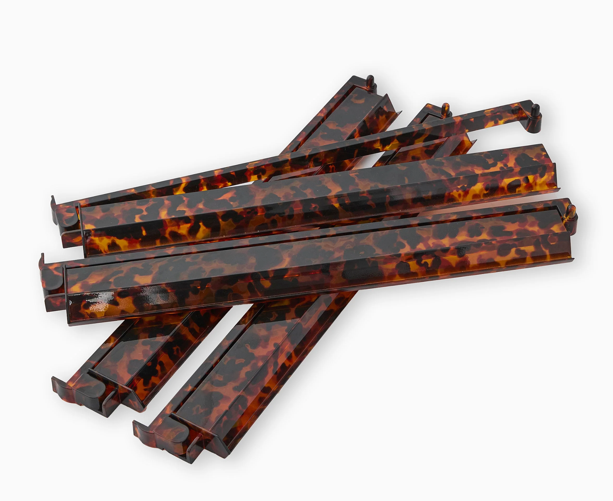 Each set includes four tortoise shell-esque acrylic racks with attached pushers, offering both practicality and a touch of luxury. With a stack length of 18.5 inches, these racks are designed for easy handling and sleek presentation. Complement your set with our Let's Rack and Roll bag, perfect for storing your racks and pushers in style between games.