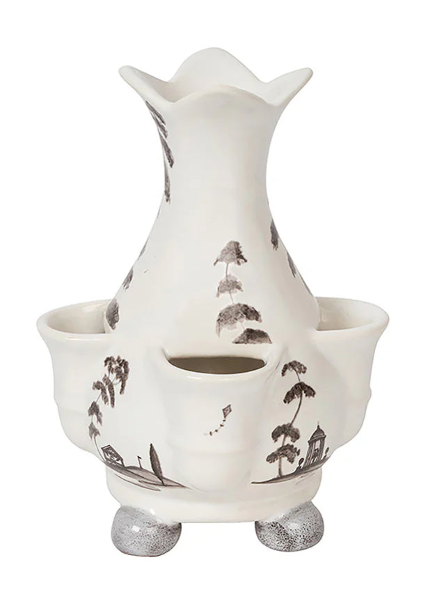 The central vase is ideal for bunches and bouquets, while the individual reservoirs at the base are for spotlighting single stems. The result is a blossoming sculpture—depicting idyllic scenes of the flora and fauna of our beloved Country Estate—and is fit to grace any dining table, entryway, or mantel with a gorgeous bounty of blooms.