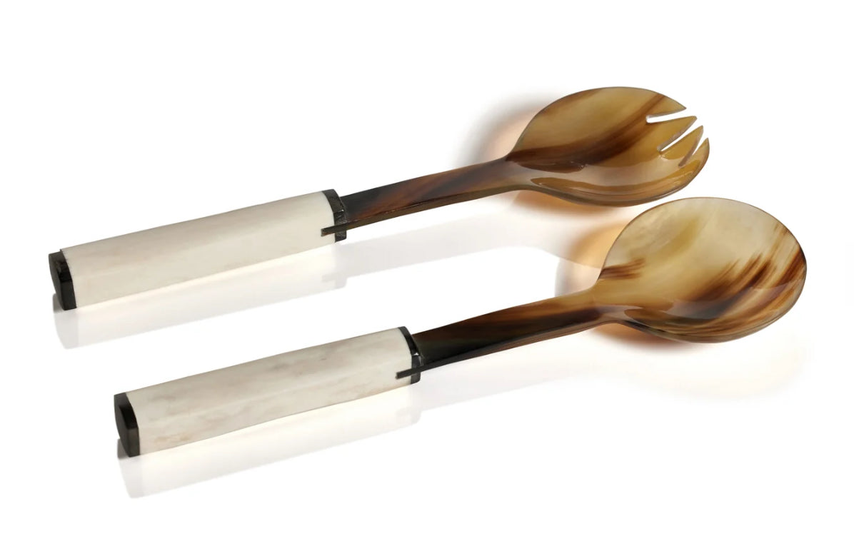 Variegated Horn With Bone Handle Salad Server