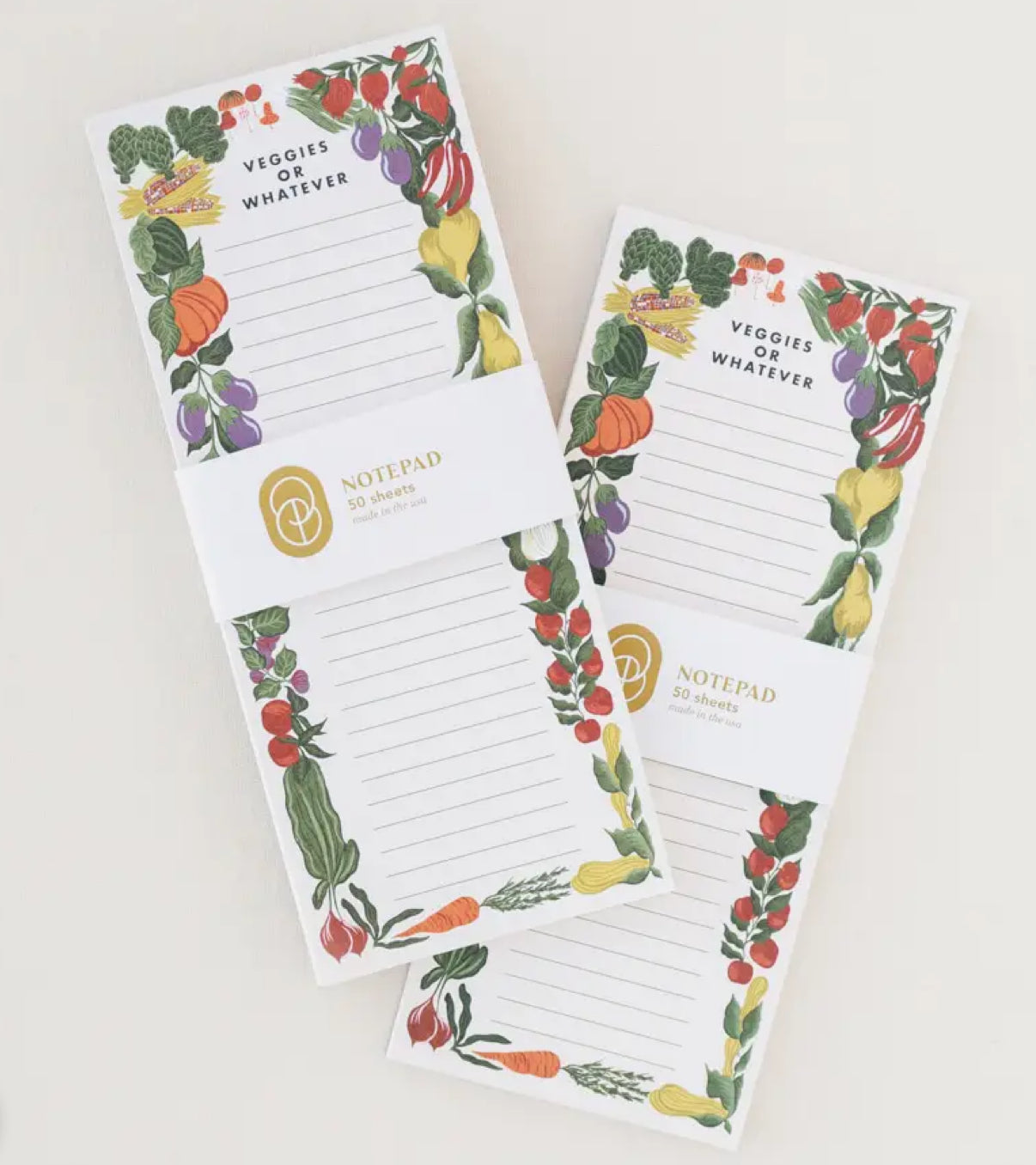 The perfect notepad for when you don't know what you want from the store but you also know it should probably include vegetables. This illustrated notepad will look adorable in your kitchen, and help you make your shopping list as you run out of food! This notepad measures 3.5 x 8.5 inches, and includes 50 sheets of 70 lb paper.