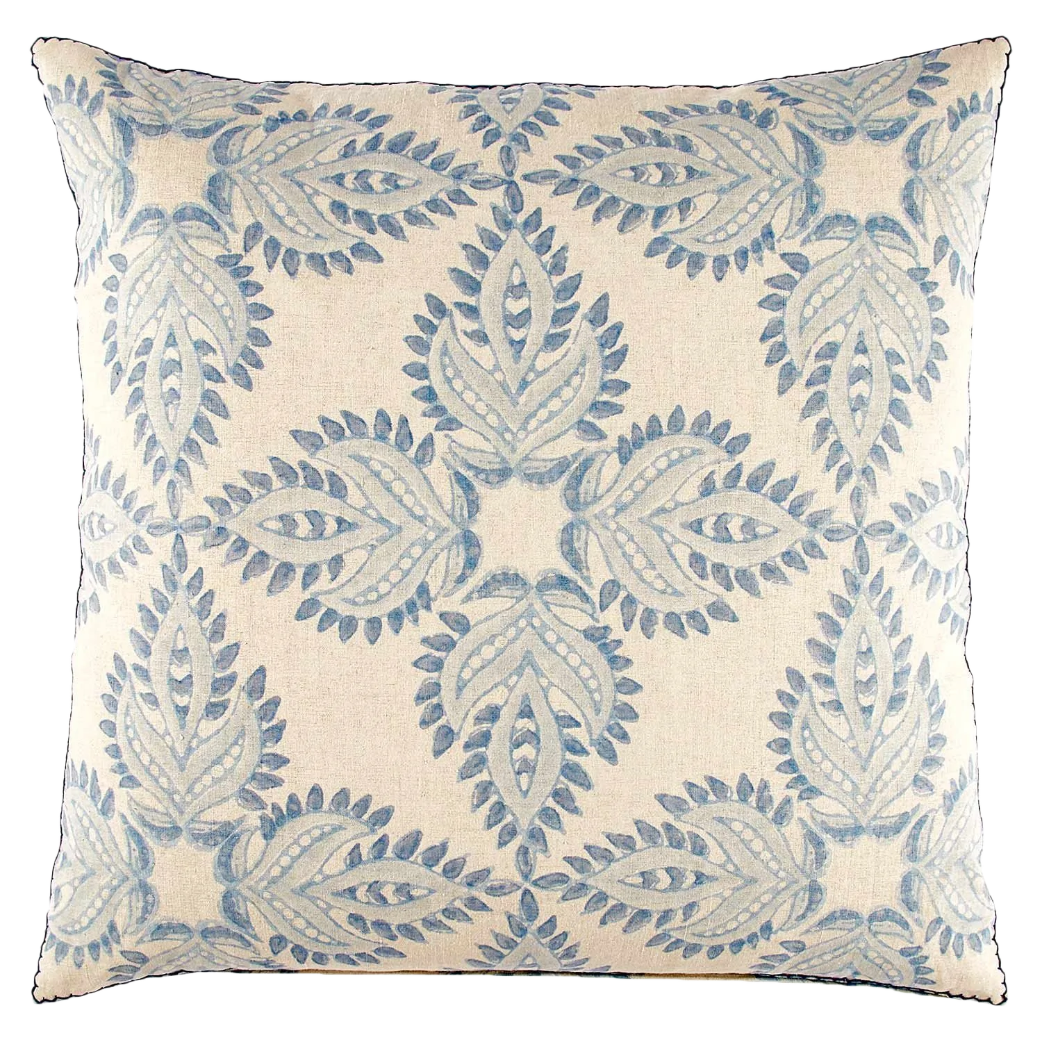 One of our best selling and favorite block prints, the nazar is an eye-shaped symbol used to summon good fortune. Hand block printed. Hand stitched edging. Cotton linen blend.