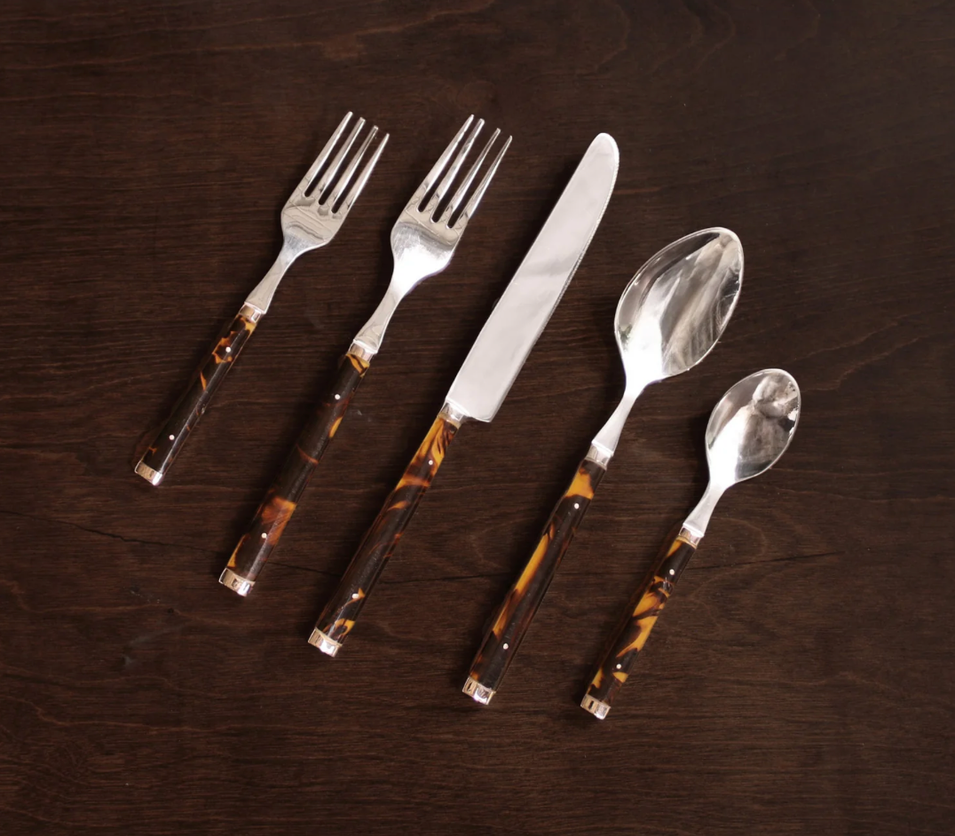 VIDA Tortoise And Gold Stainless Flatware Set Of 5