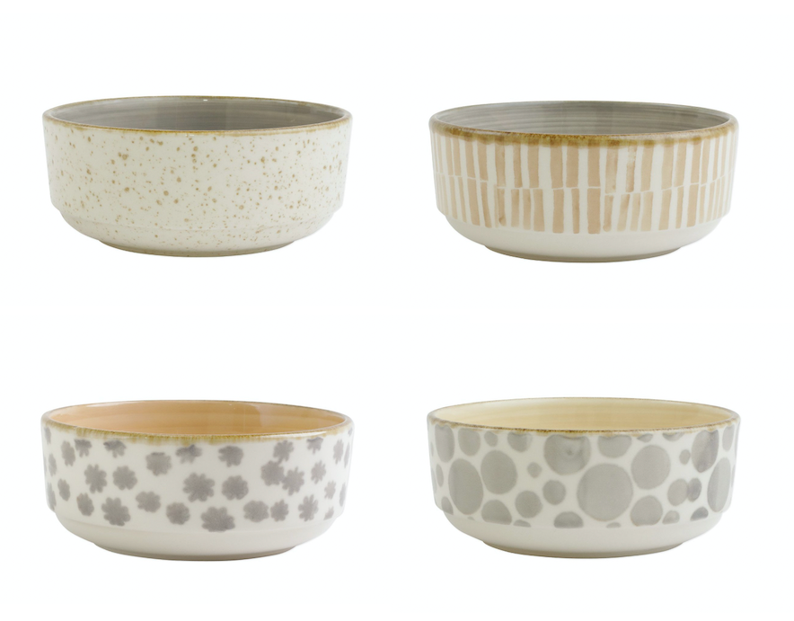 The Vietri Earth Bowls combine mid-century neutral tones with an angled silhouette in playful hand-painted patterns. We love to mix and match!