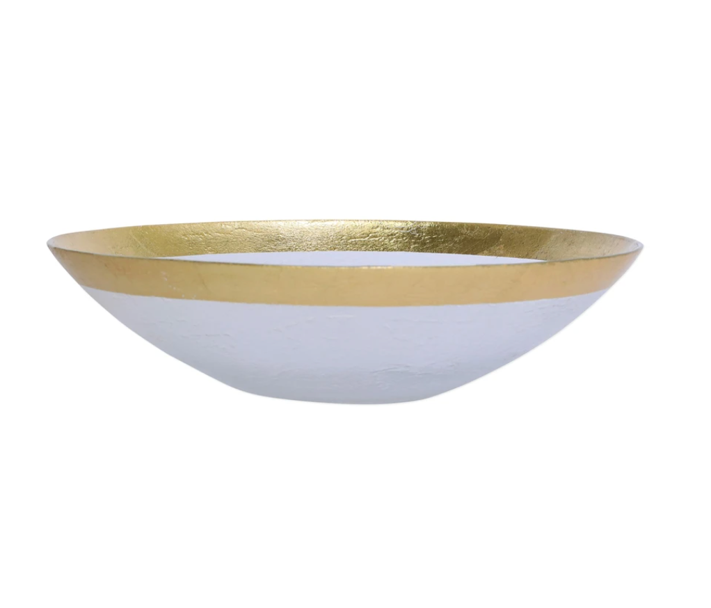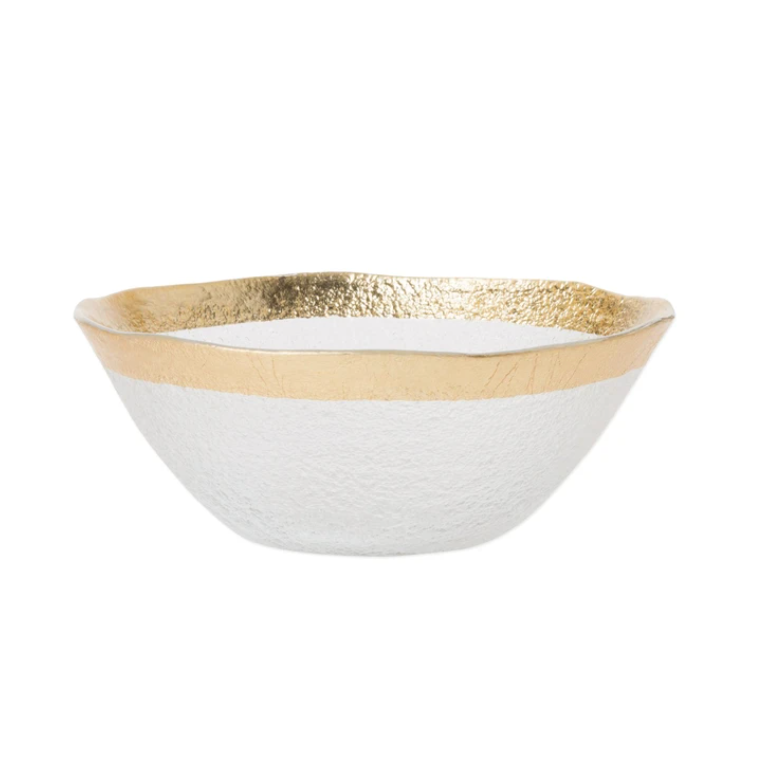 The Rufolo Glass Gold Organic Bowls bring luster to your table. These glass pieces are encircled with glowing golden strands, and the embellishment is effortlessly beautiful.