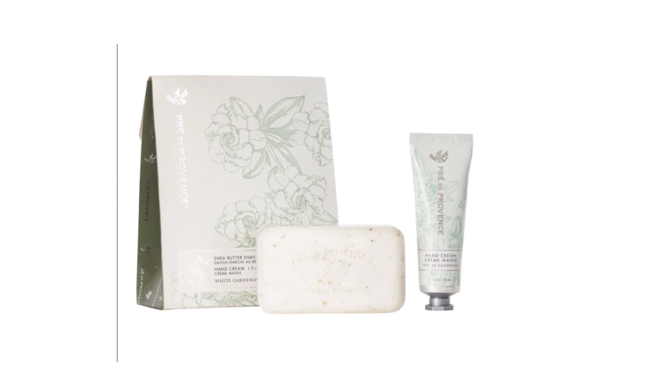 This beautifully boxed gift set contains Shea Butter Enriched Soap 150G & Hand Cream 30ML - White Gardenia