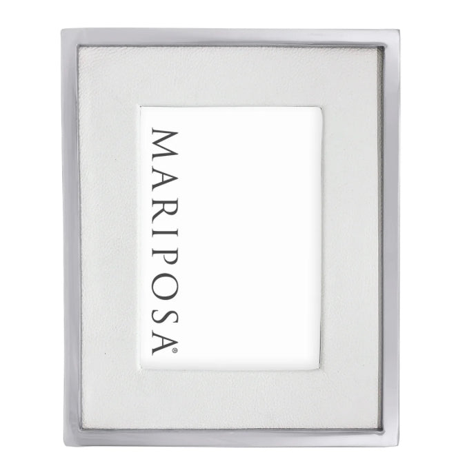 Providing an element of luxe, this modern picture frame is the best way to showcase some of your most thoughtful memories. Our White Leather with Metal Border 5x7 Frame has a clean white leather that wraps around your photograph, and a sharp aluminum border to top of the look. Personalized by a picture of your choice and gift boxed with our classic packaging, this will make an ideal gift.
