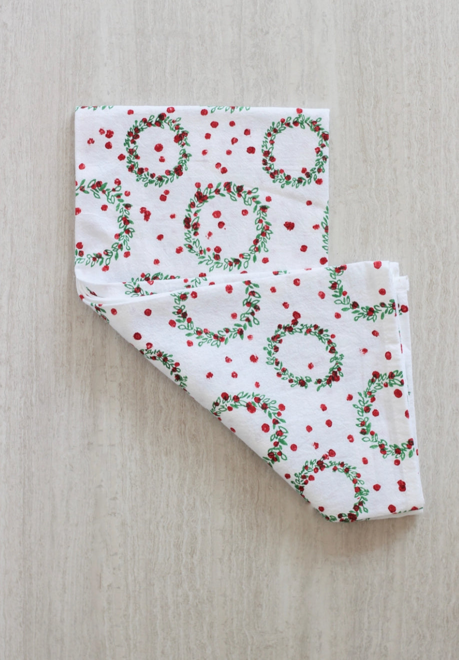 Wreath, Evergreen & Red Tea Towel