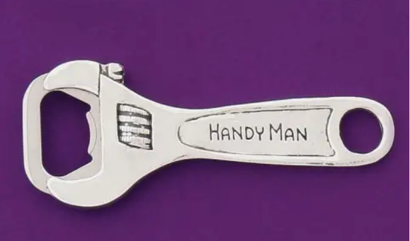 Our "Wrench" pewter bottle opener is the perfect gift for the handyman in your life. Approx. 4.75" long. Stainless steel opener component. Hand washes only.