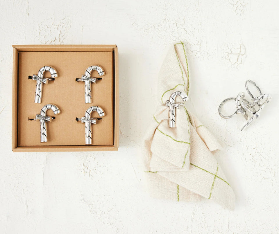 Approximately 2"H Zinc Alloy Napkin Rings w/ Candy Canes, Silver Finish
