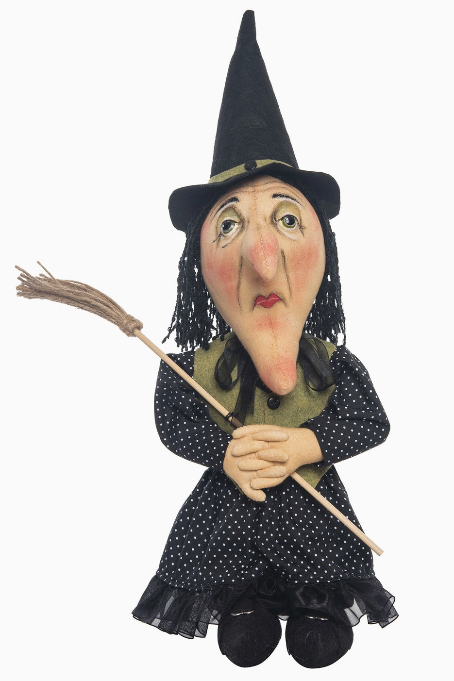 Zinnia Witch is ready to cast a spell of enchantment over your Halloween setting. Whimsically wonderful and a little bit spooky, this uniquely handcrafted art doll from Joe Spencer's Gathered Traditions collection will bring a touch of fun and scary to your home during the Halloween season.